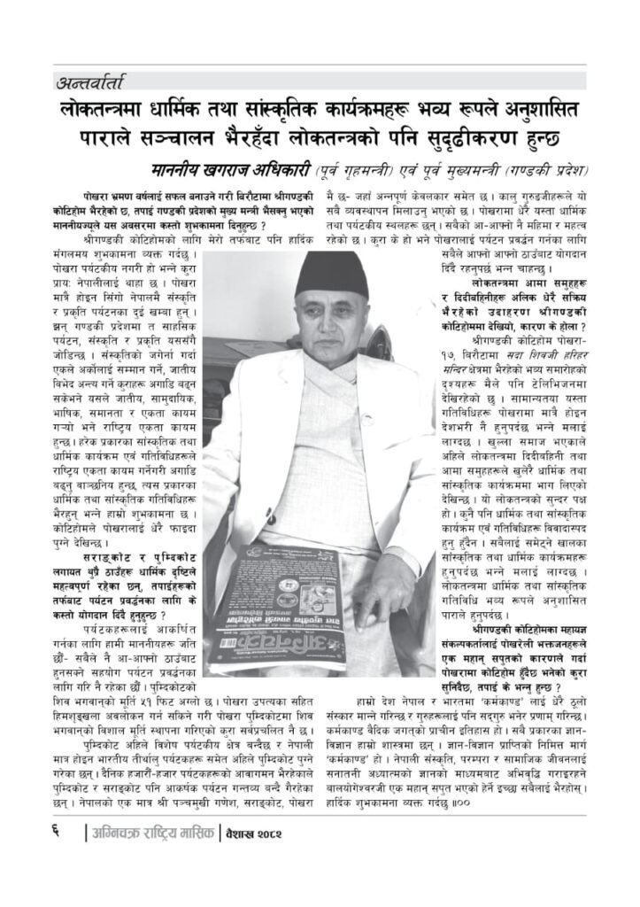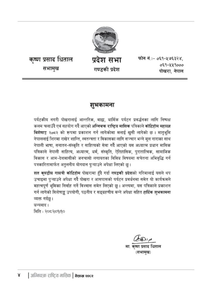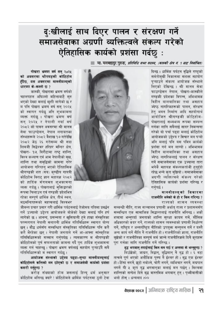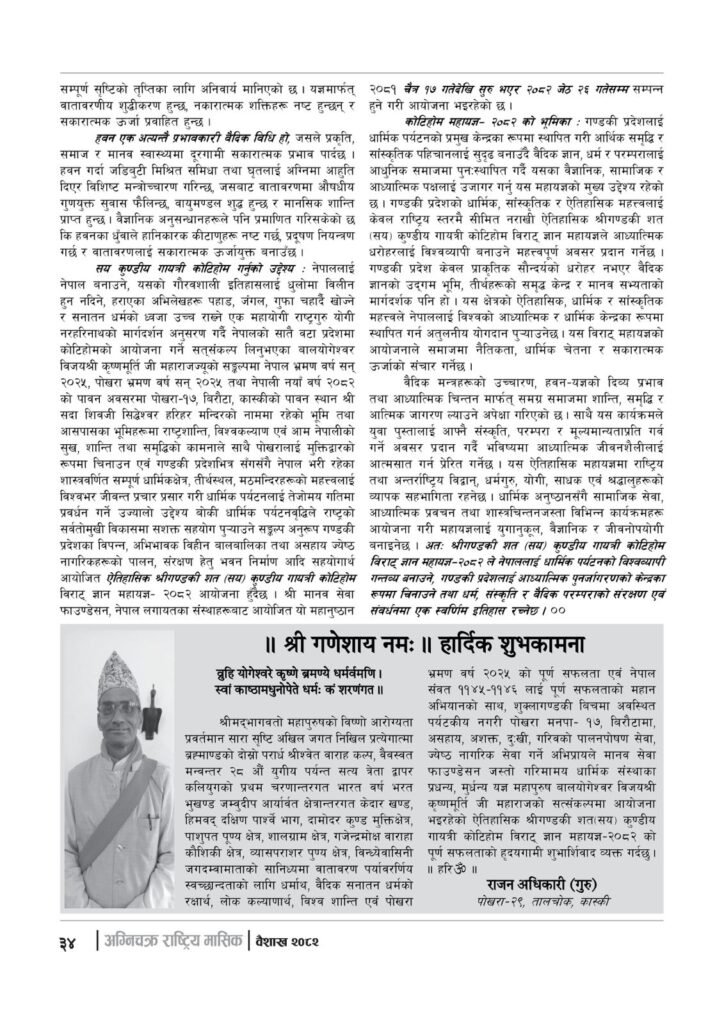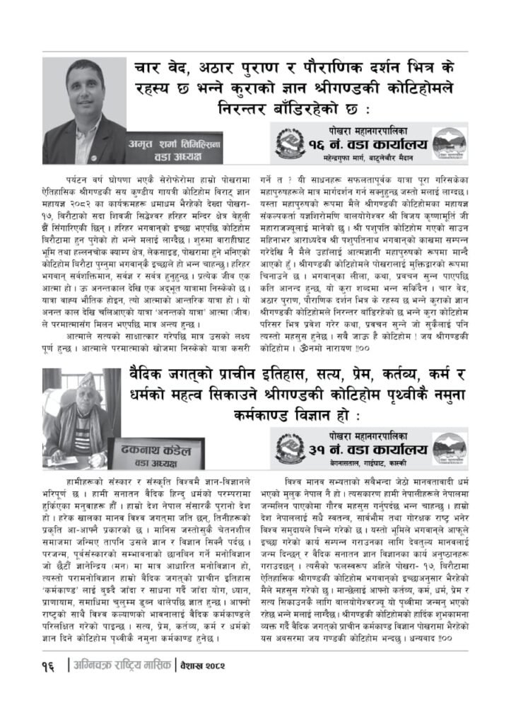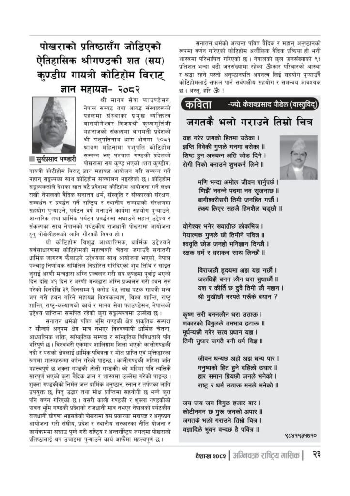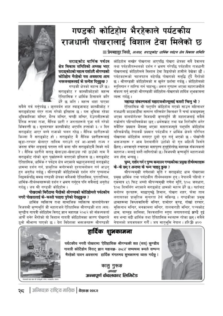 गण्डकी-कोटिहोम-पोखराको बारेमा अग्निचक्र मासिकको विशेषाङ्क प्रकाशित