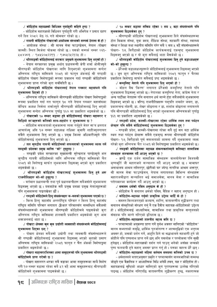 यसपटक हामीले अग्निचक्रमा प्रकाशित प्रमुख पेजहरुलाई यहाँ प्रस्तुत गरेका छौं | हेर्नुहोस्- “अग्निचक्र राष्ट्रिय मासिक- कोटिहोम-महायज्ञ-विशेषाङ्क २०८२”