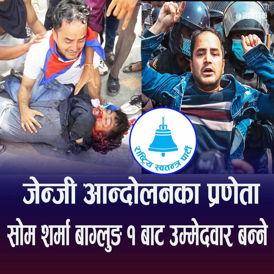 जेन्जी आन्दोलनमा सक्रियतासहित अगुवाइको भूमिका निर्वाह गर्दै आएका सामाजिक अभियन्ता सोम शर्माले आफ्नो गृह जिल्ला बागलुङ क्षेत्र नम्बर १बाट उम्मेदवारी दिने घोषणा गरेका छन्। लामो समयदेखि आम नागरिकका समस्या उठाउँदै आएका शर्माको यो घोषणाले स्थानीय राजनीति मात्र होइन, वैकल्पिक राजनीतिप्रति भरोसा राख्ने वृत्तमा पनि नयाँ तरंग सिर्जना गरेको छ।